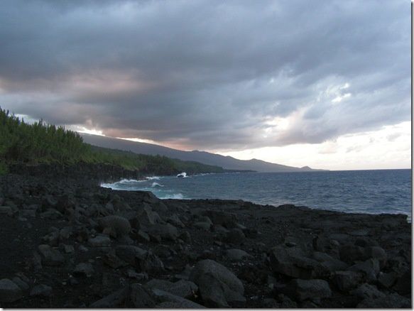 Le soir tombe vite , dès 6h il fait nuit! Il est vrai que c’est l’hiver dans l’hémisphère sud et comme on est près du tropique de Capricorne la nuit ne tombe jamais très tard sur La réunion. Donc direction le gîte!