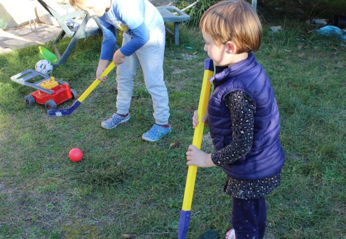 Aujourd’hui avec le beau temps c’était journée sport: vélo ce matin, cet après-midi on s’entraine au baseball et au hockey sur gazon.